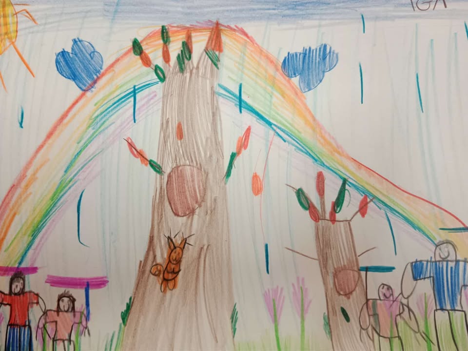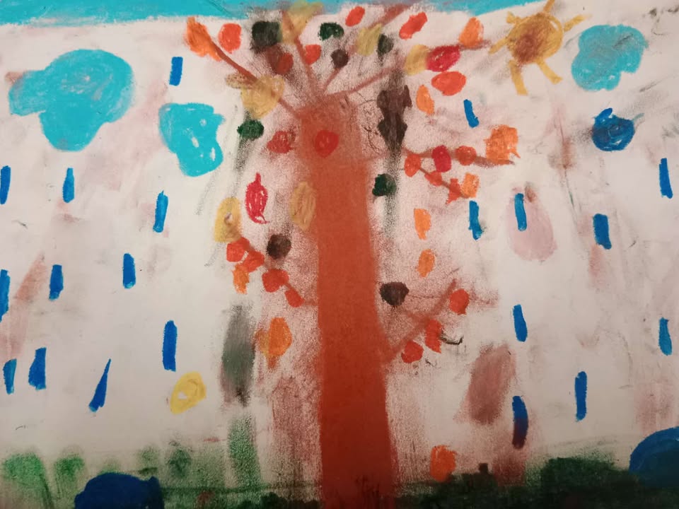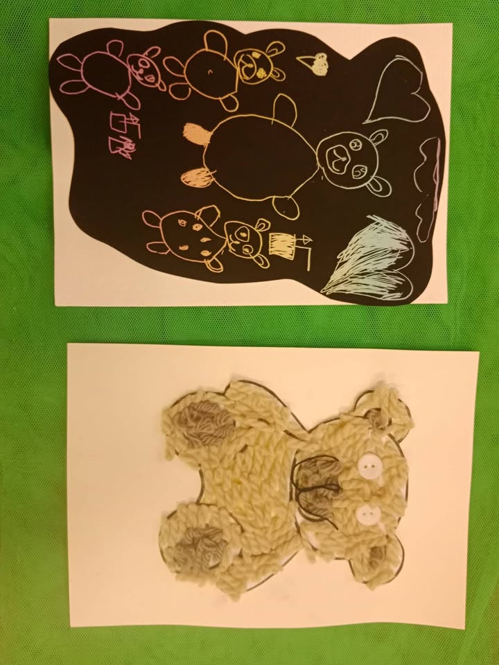 Przedszkolaki tworzą także kreatywne, pełne wyobraźni prace plastyczne inspirowane bajkami, dzięki którym mogą wyrażać swoje emocje w twórczy i bezpieczny sposób.